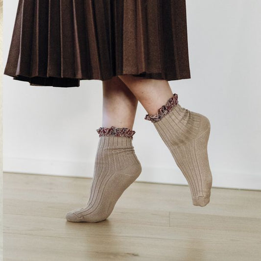 Lili Lace Trim Ribbed Ankle Socks - Petit taupeCollégien 18/20(11/13cm) 21/23(13.5/14.5cm) 24/27(15/16.5cm) 28/31(17/18.5cm) 32/35(19/21cm) -