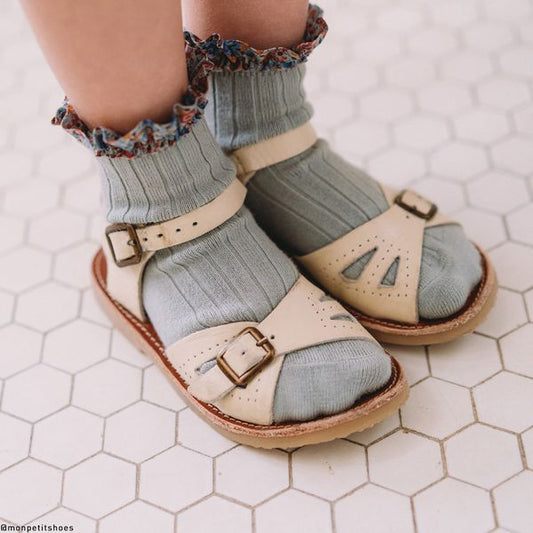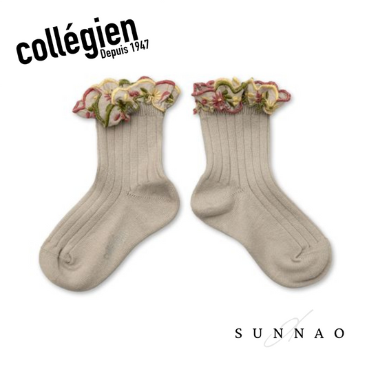 Anémone Embroidered Ruffle Ribbed Ankle Socks - BiscuitCollégien 18/20(11/13cm) 21/23(13.5/14.5cm) 24/27(15/16.5cm) 28/31(17/18.5cm) 32/35(19/21cm) -