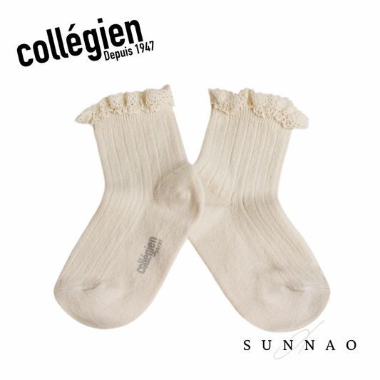 Lili Lace Trim Ribbed Ankle Socks - Doux AgneauxCollégien 18/20(11/13cm) 21/23(13.5/14.5cm) 24/27(15/16.5cm) 28/31(17/18.5cm) 32/35(19/21cm) -